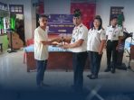 Kapolsek Melonguane Berikan Bantuan Semen bagi Korban Kebakaran Rumah.(ist)
