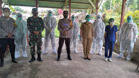 Polsek Kauditan dibantu Instansi terkait kembali melaksanakan pengawalan dan pengamanan pemakaman jenazah Covid-19 di Pekuburan Umum Desa Paslaten, Kabupaten Minahasa Utara.