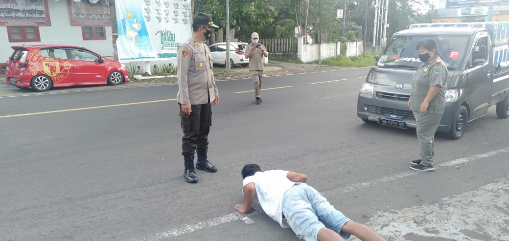 Dalam operasi tersebut sebanyak dua orang pelanggar prokes diberikan sanksi fisik berupa push up dan dihimbau agar kedepannya dapat menerapkan protokol kesehatan.
