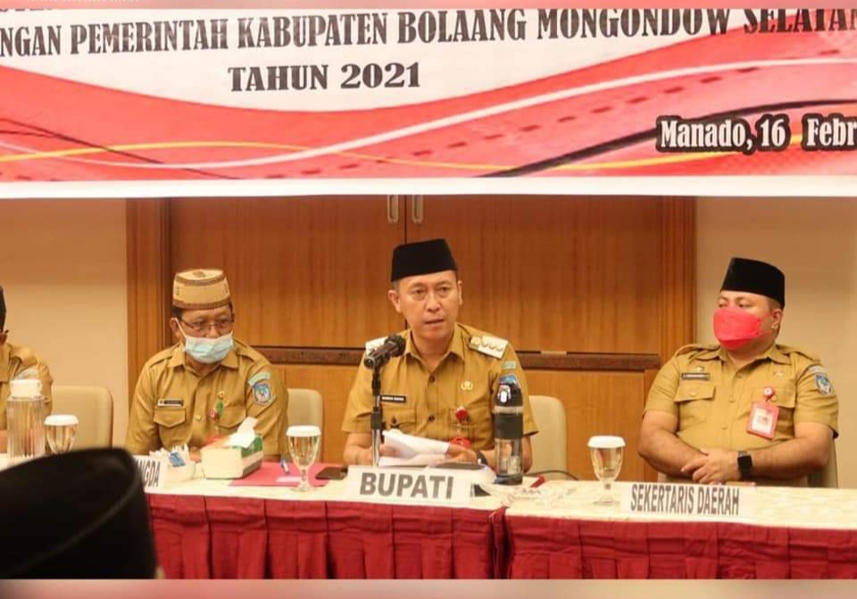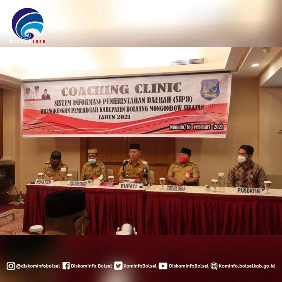 SUARASULUT.COM,BOLSEL– Bupati H. Iskandar Kamaru SPt didampingi Sekda Marzanzius Arvan Ohy SSTP membuka kegiatan Coaching Clinic Sistem Informasi Pemerintahan Daerah (SIPD) di lingkungan Pemkab Bolsel tahun 2021 yg dilaksanakan di Hotel Aston Manado pada Selasa (16/02/2021).