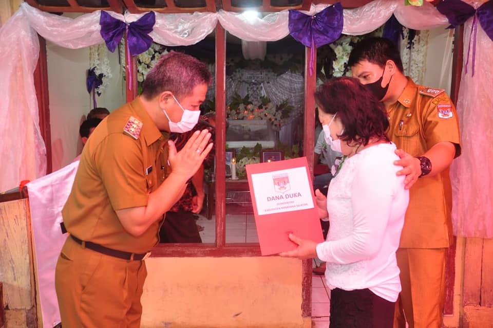 Wakil Bupati Minahasa Selatan Pdt. Petra Yani Rembang menyampaikan turut berdukacita atas nama Pemerintah Kabupaten Minahasa Selatan, Bupati Minahasa Selatan Franky Donny Wongkar, SH., serta Keluarga Wongkar-Sumual bersama Keluarga Rembang-Wati dan meminta Kepada Hukum Tua, Camat agar segera mengurus dokumen Akta Kematian dan dokumen penermimaan Santunan Dana Duka dari Pemerintah Kab. Minahasa Selatan.