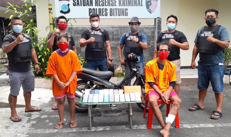 “Pengembangan atas kasus pencurian di rumah korban perempuan FMD tersebut, kami berhasil membongkar 5 TKP pencurian HP lain nya sekitar wilayah kota Bitung yang diduga kuat dilakukan oleh YP dan AM”, beber Kasat Reskrim Polres Bitung AKP. Frely Sumampow, S.E.