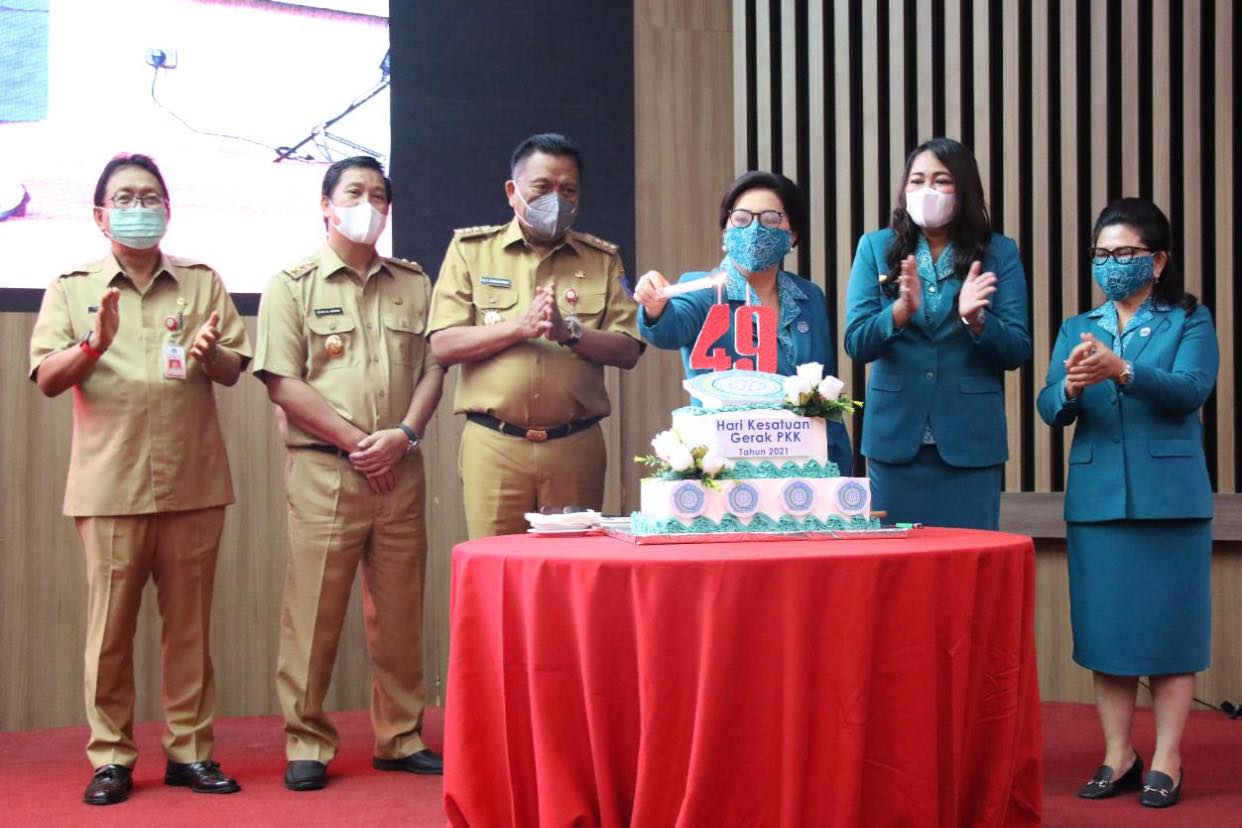 Acara Pelantikan TP. PKK Provinsi Sulut masa bahkti 2021-2024 dirangkaikan dengan Selebrasi Puncak Peringatan HKG PKK Ke-49 ditandai dengan Pemasangan lilin Kue Ulang Tahun.