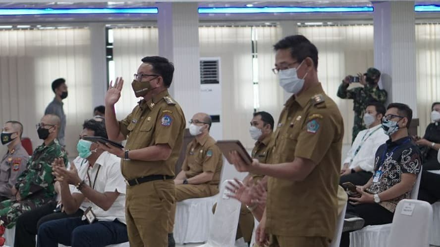 Turut hadir unsur forkopimda di Ruang SH Sarundajang, dan para perangkat Kelurahan serta Kecamatan melalui ZOOM meeting.(angky)
