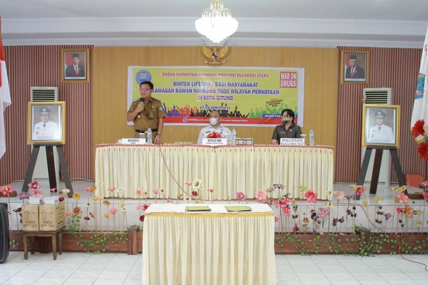 SUARASULUT.COM,BITUNG–Walikota Ir. Maurits Mantiri, MM. mengahadiri kegiatan Bimtek Lifeskill Bagi Masyarakat Kawasan Rawan Narkoba Pada Wilayah Perkotaan di Kota Bitung yang berlangsung di Balai Latihan Tenaga Kerja Kota Bitung. Selasa (27/04/2021).