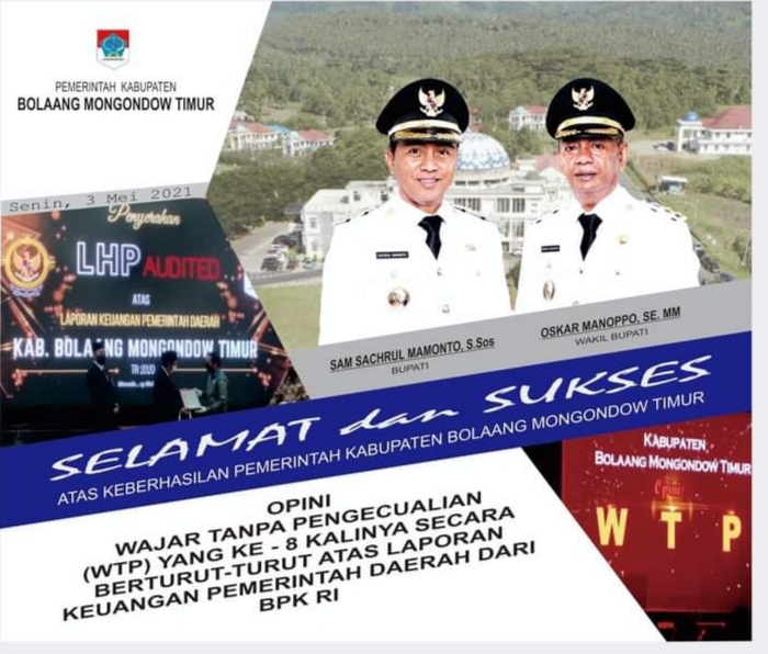 “Capaian WTP ini bukan semata-mata hanya karena Bupati dan Wabup, tapi berkat kehebatan seluruh SKPD yang sudah bekerja keras demi mempersembahkan opini WTP kepada masyarakat Boltim. Untuk itu, Saya mengucapkan apresiasi yang setinggi-tingginya kepada seluruh SKPD di bawah komando Sekda,” kata Bupati.