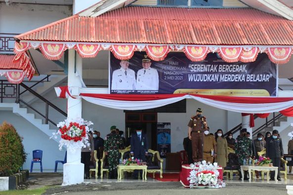 SUARASULUT.COM,TALAUD–Bertempat di Halaman Kantor Bupati Kepulauan Talaud telah dilaksanakan Upacara Bendera dalam rangka Hari Pendidikan Nasional 2 Mei 2021.