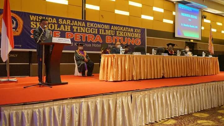 SUARASULUT.COM,BITUNG–Walikota Ir. Maurits Mantiri M.M. menghadiri Wisuda Sarjana Ekomoni Angkatan XVI Stie Petra Bitung di Grand Kawanua Convention Center Manado.