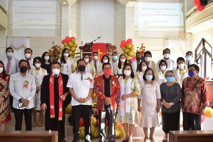 SUARASULUT.COM,MANADO–Wakil Wali Kota Manado dr. Richard Sualang menghadiri HUT Jemaat GMIM Tabur Kasih yang ke – 20 yang dirangkaikan dengan Peresmian Gedung Pastori GMIM Tabur Kasih Malalayang yang dipimpin oleh Pdt.Dr.Hein Arina selaku Ketua Sinode GMIM.