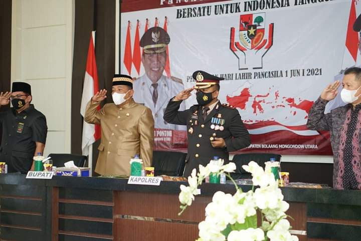 Bupati Bolmut Ikuti Upacara Peringatan Hari Lahir Pancasila Secara Virtual