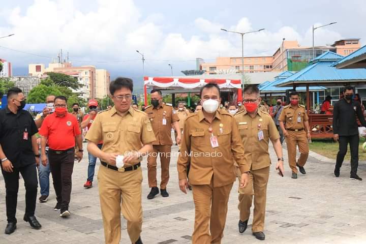 SUARASULUT.COM,MANADO–Wali Kota Manado Andrei Angouw dan Wakil Wali Kota dr. Richard Sualang Menghadiri Kegiatan Penanaman Pohon yang sedianya akan dilakukan oleh Ketua DPR RI DR. (H.C.) Puan Maharani di Taman Berkat Manado, Senin/07/06/2021.