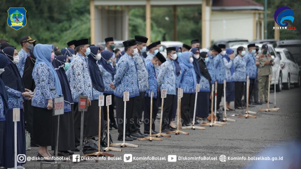 SUARASULUT.COM,BOLSEL–Bupati H. Iskandar Kamaru SPt memimpin Apel Kerja yg dirangkaikan dengan Apel Korpri bulan Juni di Kawasan Perkantoran Panango.