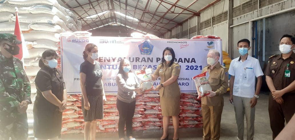Acara tersebut diawali dengan Laporan dari Kepala Gudang Bulog Ulu Siau, Junaidi Kandoli, tentang kesiapan Bulog untuk menyalurkan Bantuan Beras PPKM 2021 di  Kabupaten Kepulausn Sitaro.
