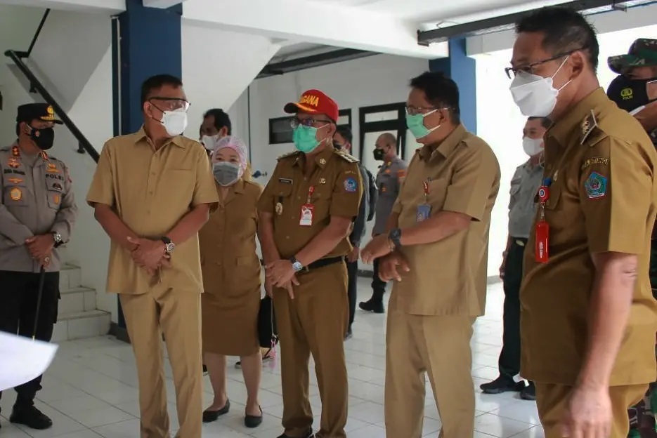 SUARASULUT.COM,BITUNG–Walikota, Ir. Maurits Mantiri M.M. dan Wakil Walikota Hengky Honandar S.E. bersama Gubernur Sulawesi Utara Olly Dondokambey, S.E. dan Kapolda Sulut Pol. Drs. Nana Sujana, M.M., menghadiri Peninjauan RS Darurat Kota Bitung, Selasa (27/07/2021).
