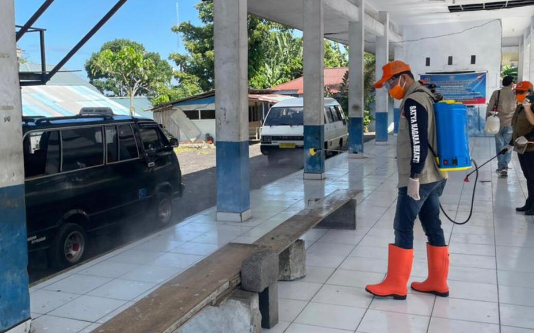 Bupati Joune Ganda SE Bersama dinas kesehatan, BPBD dan SP3K  Sabtu (31/07/21) dari pukul 09:00 WITA melakukan penyemprotan secara serentak di wilayah Minahasa Utara.