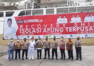 Wakapolda dan rombongan melihat dari jauh para warga yang sedang menjalani isolasi di atas kapal tersebut.