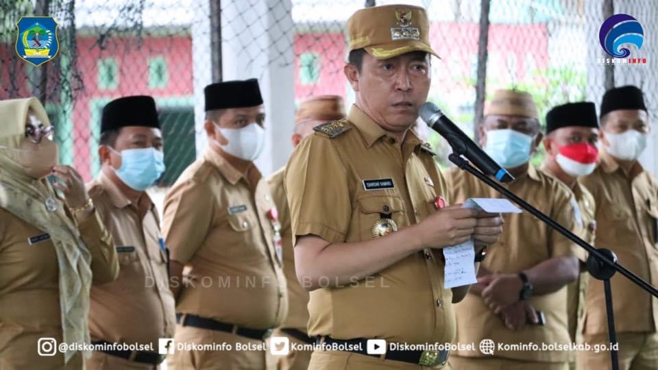 SUARASULUT.COM,BOLSEL—Bupati H. Iskandar Kamaru SPt memimpin Apel Kerja sekaligus Kunjungan Kerja di Kecamatan Posigadan dan melanjutkan Rapat Kerja di Kecamatan Tomini, dan Helumo pada Senin (06/09/2021).