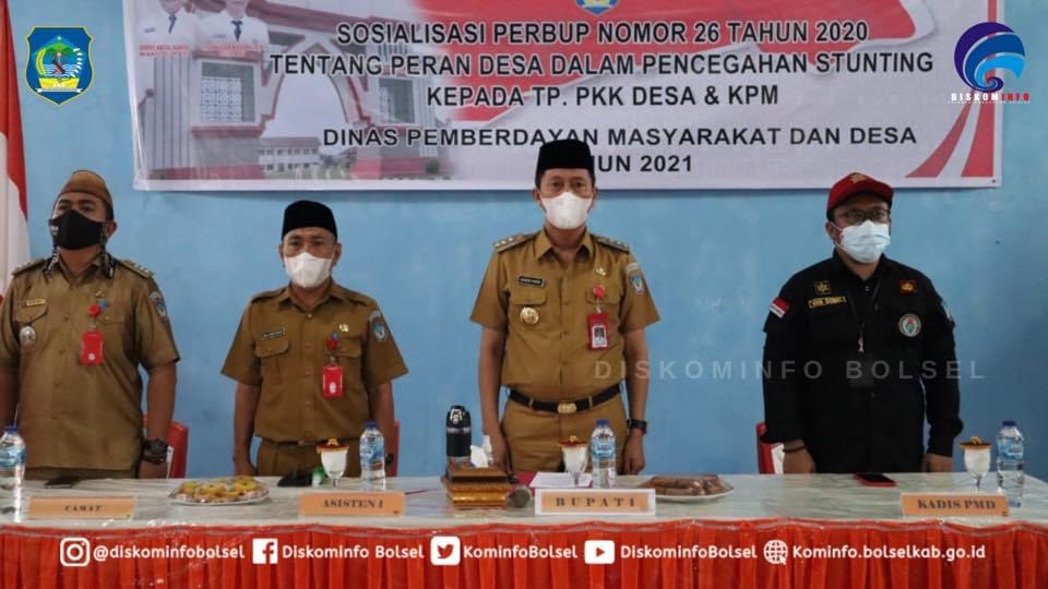 Bupati H. Iskandar Kamaru SPt menyampaikan bahwa kegiatan ini merupakan upaya Pemerintah Daerah dalam Penanganan Stunting. Untuk mendukung hal ini maka diterbitkan Peraturan Bupati Nomor 26 Tahun 2020 Tentang Peran Desa dalam Pencegahan Stunting karena salah satu Prioritas Dana Desa adalah Pencegahan Stunting. Sehingga Pemerintah Desa harus mengalokasikan Dana Desa untuk membiayai kegiatan-kegiatan yang bertujuan untuk mengurangi dan mencegah Stunting di Desa.