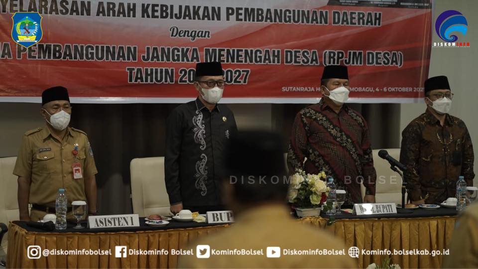 SUARASULUT.COM,BOLSEL–Bupati H. Iskandar Kamaru SPt didampingi Wabup Deddy Abdul Hamid membuka kegiatan Sosialisasi Penyelarasan Arah dan Kebijakan Pembangunan Daerah dengan Rencana Pembangunan Jangka Menengah Desa (RPJM Desa) Tahun 2021-2027 yang diselenggarakan di Hotel Sutan Raja Kotamobagu pada Senin (04/10/2021).