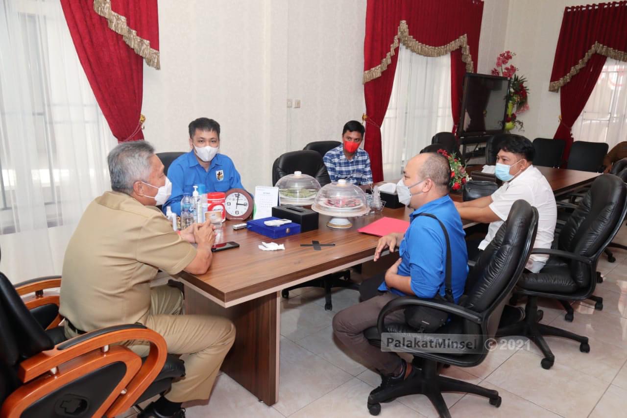SUARASULUT.COM,MINSEL- Bupati Franky Donny Wongkar, SH., beraudiensi dengan Komite Nasional Pemuda Indonesia (KNPI) Kabupaten Minahasa Selatan (Minsel), di Ruang Rapat Bupati.