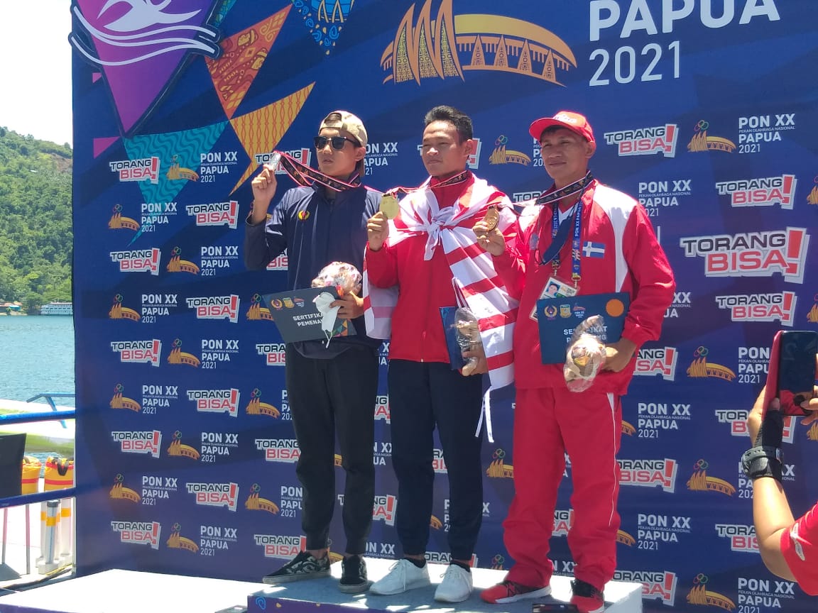 Miki menambah 1 medali Perunggu PON XX Papua usai finish di urutan 3 setelah DKI Jakarta dan Jawa Barat pada perlombaan cabang olahraga (Cabor) Selam Laut Nomor 6.000 Meter di Teluk Yos Sudarso, Kota Jayapura, Selasa (12/10/2021) pagi.