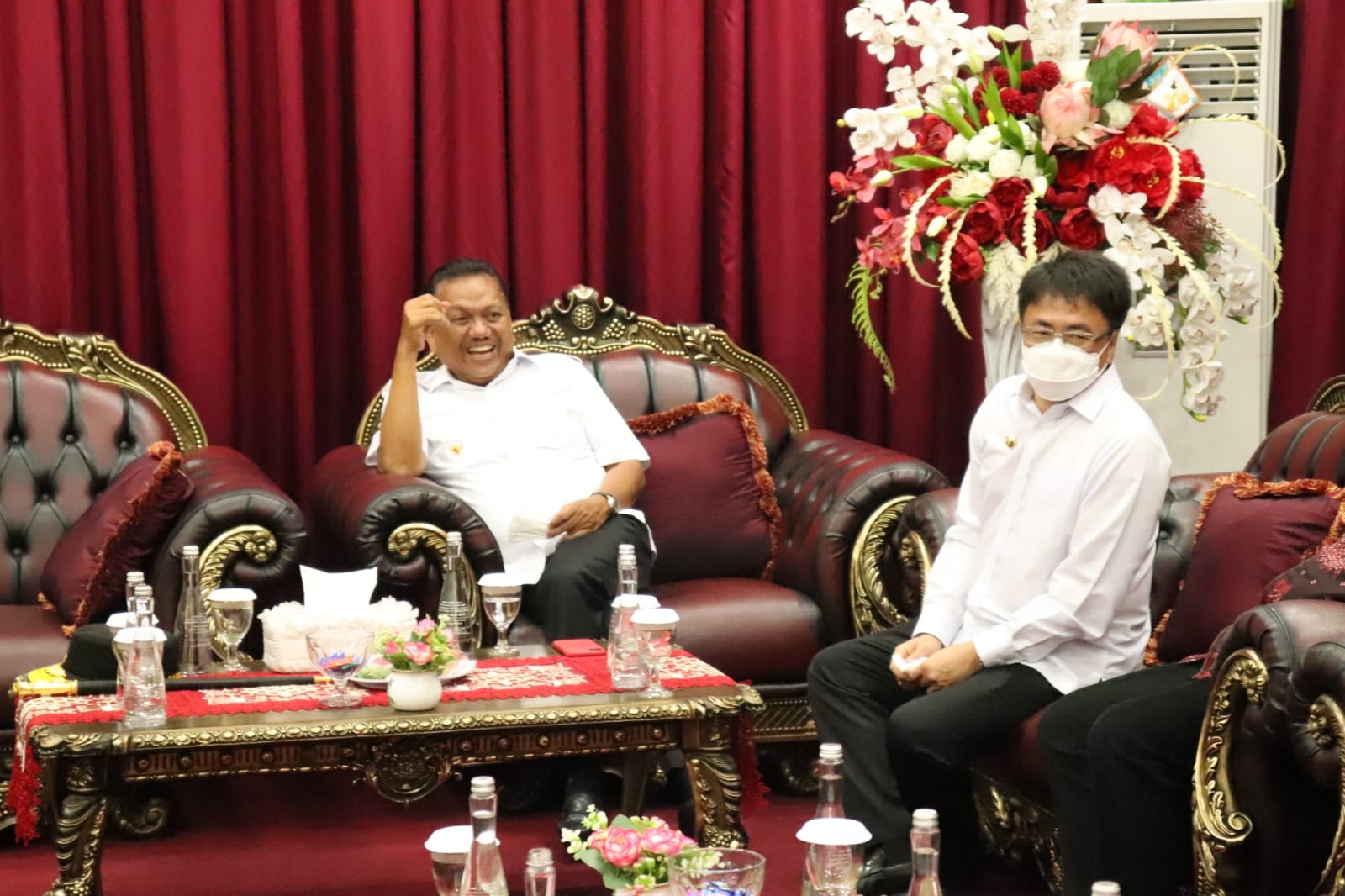 SUARASULUT.COM,MANADO Walikota Manado Andrei Angouw mendampingi Gubernur Sulut Olly Dondokambey menjemput kedatangan Ketua Mahkamah Agung R.I di daerah ini Provinsi Sulawesi Utara.