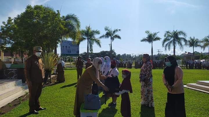 Pada kesempatan tersebut Sekda menyerahkan Bantuan Kebutuhan Spesifik dari kementerian Pemberdayaan Perempuan dan Perlindungan Anak RI kepada anak yatim dan anak piatu. Penerima :