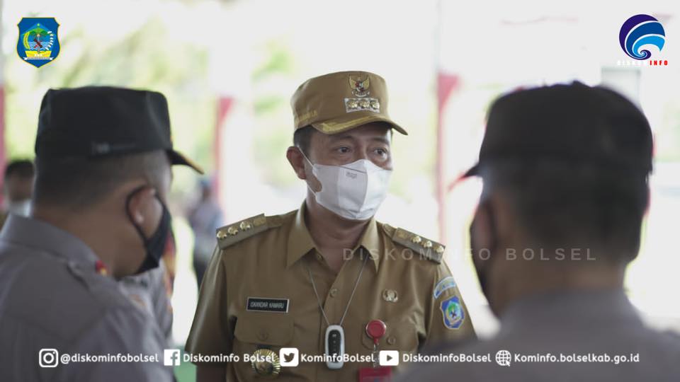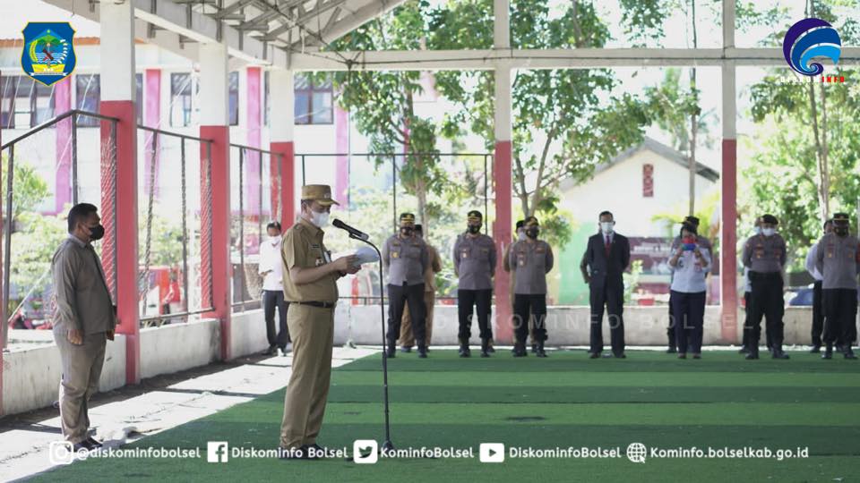 SUARASULUT.COM,BOLSEL–Bupati H. Iskandar Kamaru SPt memimpin  Apel Gelar Pasukan dalam rangka Kesiapan Pencegahan, Penanganan, Penanggulangan Bencana Alam di wilayah Kabupaten Bolaang Mongondow Selatan yang digelar di Lapangan Futsal Molibagu Kecamatan Bolaang Uki pada Senin (25/10/2021).