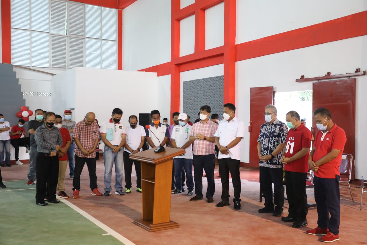 PERESMIAN: Gubernur Sulut Olly Dondokambey dan Wakil Gubernur Steven Kandouw (ODSK) pembangunan infrastruktur di daerah Nyiur Melambai berkembang pesat, kendati masih masa pandemi covid 19. Buktinya, Gedung Tenis Lapangan Indoor Sario diresmikan.(foto:ssc)