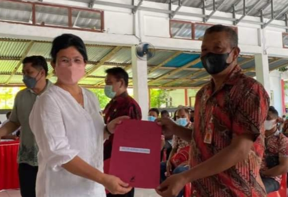 SUARASULUT.COM,SITARO–Bupati Kepulauan Sitaro Evangelian Sasingen, meninjau pelaksanaan vaksin massal covid-19, di Pantai Bira Lamanggo Kecamatan Biaro.