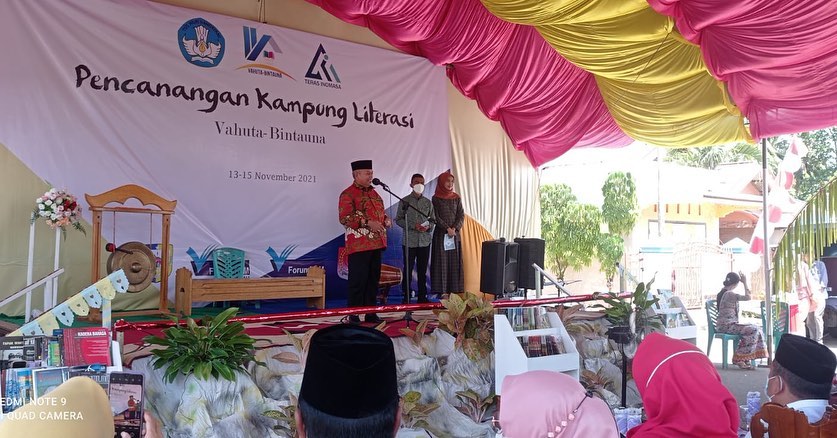 SUARASULUT.COM,BOLMUT–Wakil Bupati Bolaang Mongondow Utara Drs. Hi. Amin Lasena, MAP menghadiri pencanangan Kampung Literasi Vahuta bertempat di Desa Vahuta Kecamatan Bintauna.