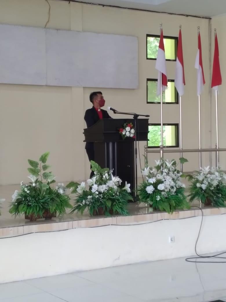 SUARASULUT.COM,SITARO— Berlangsung di Auditorium Pemkab Sitaro, dilaksanakan Ibadah bersama Pemerintah Kabupaten Kepulauan Sitaro, yang dipimpin oleh Pdt. Firdanis Tumei, S.Teol, selaku Pendeta Pelayanan GMIST Jemaat Getsemani Timeno, Resort Siau Barat, dengan mengambil Pembacaan Alkitab, Kolose 1 : 28 – 29.