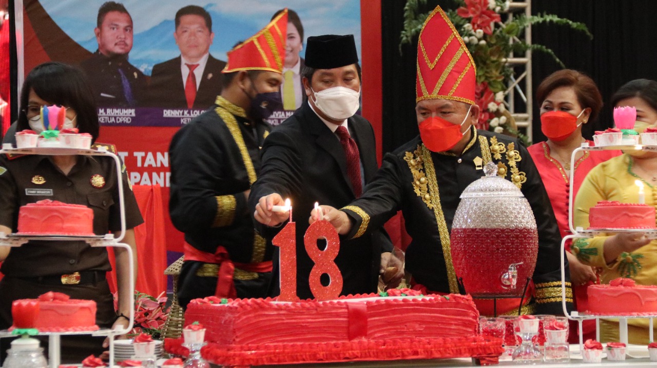 Dalam sambutannya Wagub Kandouw menyampaikan untuk tetap bersyukur, karena saat ini kita boleh menyaksikan bahwa tanpa terasa Minahasa Utara sudah menginjak 18 Tahun.