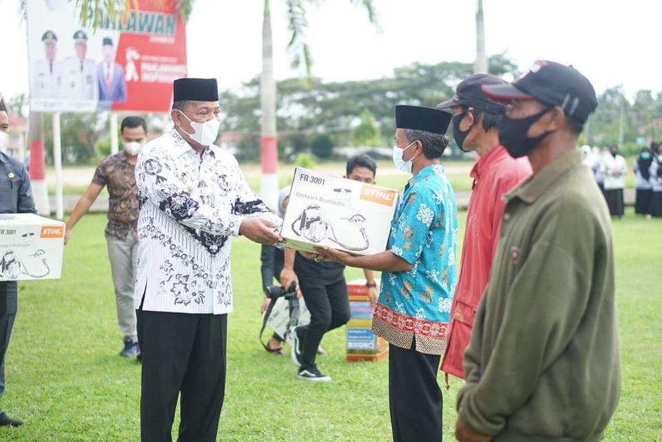 KEGIATAN: Bupati Bolmut Drs. Hi. Depri Pontoh Irup HUT PGRI Ke-76 dan Hari Guru Nasional Tahun 2021 Tingkat Kabupaten Bolaang Mongondow Utara yang Bertempat di Halaman Kantor Bupati Bolmut.(foto:ssc)