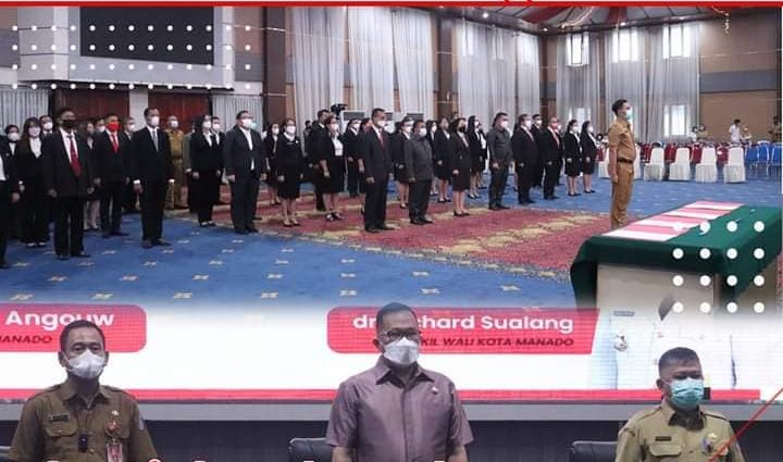 SUARASULUT.COM,MANADO–Wakil Wali Kota Manado dr. Richard Sualang melantik dan Pengambilan Sumpah pada Upacara Pemberhentian dan Pengangkatan Dalam Jabatan Administrator Dan Pengawas Di Lingkungan Pemerintah Kota Manado Dan Pengangkatan Dalam Jabatan Administrator Dan Pengawas Di Lingkungan Sekretariat Daerah Dan Badan Kesatuan Bangsa Dan Politik Kota Manado, di ruang serbaguna Kantor Pemerintah Kota Manado.