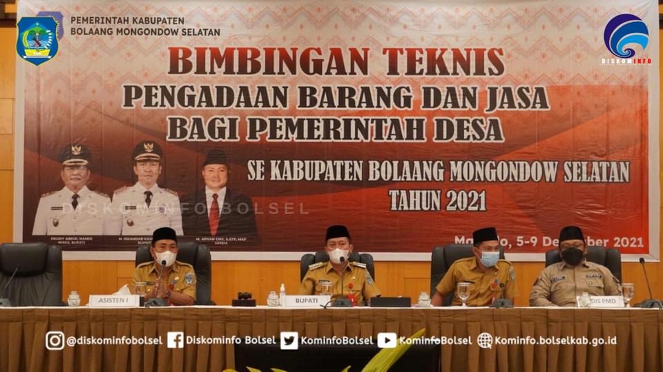 SUARASULUT.COM,BOLSEL—Bupati H. Iskandar Kamaru SPt membuka Bimbingan Teknis (Bimtek) Pengadaan Barang dan Jasa bagi Pemerintah Desa Tahun 2021 yang dilaksanakan di salahsatu hotel ternama di Manado, Senin (06/12/2021).
