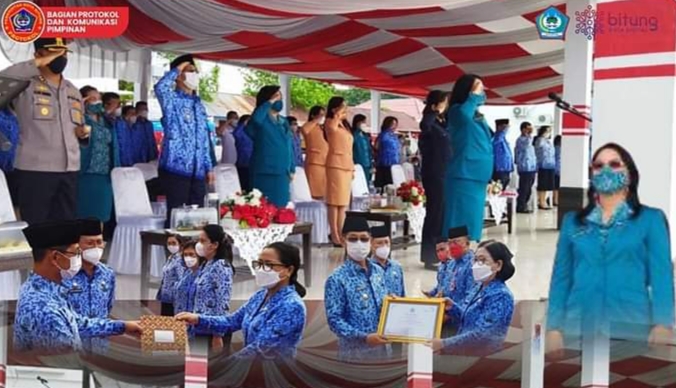 SUARASULUT. COM, BITUNG–Upacara Memperingati Hari Ibu Ke – 93 Tahun 2021 Dirangkaikan Dengan Apel Korpri Dilingkungan Pemerintah Kota Bitung.