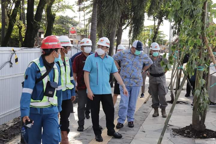 Dalam peninjauan ini, Walikota didampingi pihak pelaksana pekerjaan dan penataan kawasan, Kadis DLH Kota Manado Frangky Porawouw dan Kasat Pol PP Kota Manado.(agungSugi)