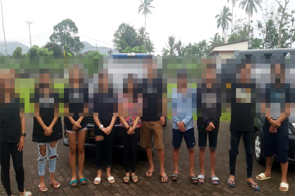 Adapun identitas anak-anak muda tersebut yaitu 5 pria berinisial GW (26), GR (22), MS (18), SW (17), DP (24) dan 5 perempuan berinisial CR (15), M (14), GP (15), AP (21) dan JR (17).(die)