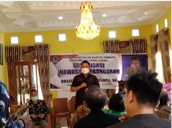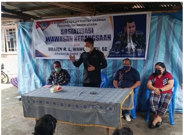 Sementara, Ketua Komisi IV DPRD Sulut, Braien Waworuntu menggelar sosialisasi wawasan kebangsaan di Desa Tounelet dan di Desa Tincep Kecamatan Sonder.