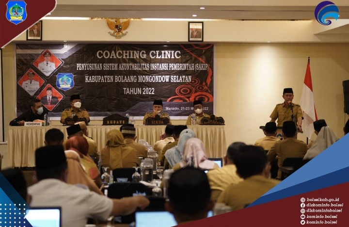 Bupati H. Iskandar Kamaru S.Pt bersama Wabup Deddy Abdul Hamid membuka kegiatan Coaching Clinic Penguatan Sistem Akuntabilitas Kinerja Instansi Pemerintah (SAKIP) bagi Perangkat Daerah di lingkungan Pemkab Bolsel di Grand Luley Resort Manado.
