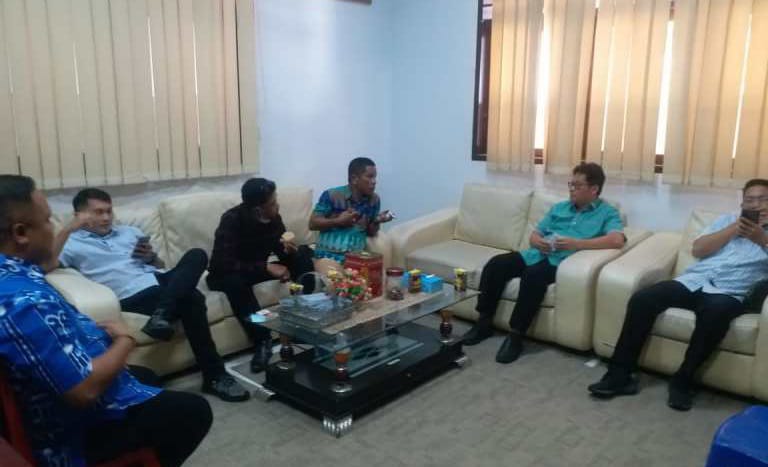 Menyambut kedatangan rombongan personil DPRD Kota Bitung, Setwan DPRD Kotamobagu dipimpin Kasubag Keuangan, Ruslandi Mongilon menerima tamu tersebut di ruangan kerja Sekwan DPRD Kotamobagu, Kamis (24/03/2022).