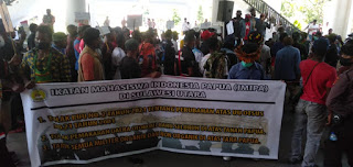 Manado – Aksi damai, Senin (28/03), dilakukan Ikatan Mahasiswa Indonesia Papua (IMIPA) di Sulawesi Utara (Sulut) di Kantor Gubernur Sulut.
