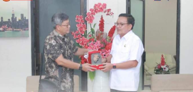 Bitung–Wali Kota Bitung Ir. Maurits Mantiri, M.M Menerima Kepala Badan Pengembangan Infrastruktur Kementerian PUPR Ir. Rahman Arief Dienaputra. M.Eng yang bertempat di Ruang Kerja Walikota.