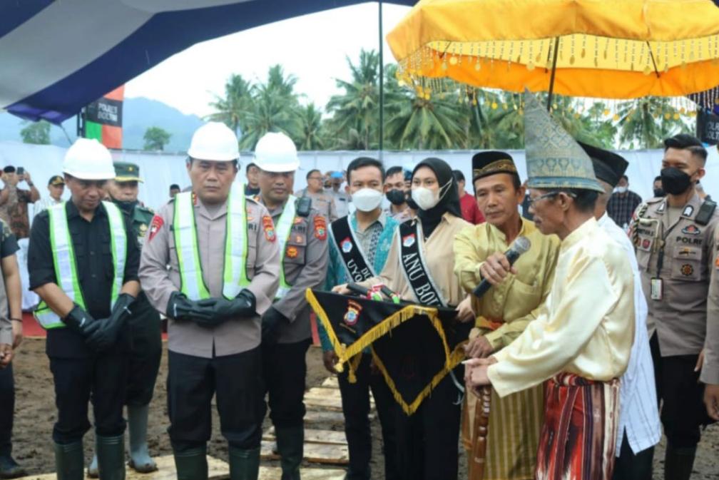 Boltim – Kepala Kepolisian Daerah Sulawesi Utara (Polda Sulut) Irjen Pol Drs Mulyatno SH,. MM, bersama Bupati Mongondow Timur (Boltim), Sam Sachrul Mamonto S.Sos M.Si, meletakkan batu pertama pembangunan Markas Polres (Mapolres) Boltim, tepat di Ibu kota Kabupaten Boltim Kecamatan, Tutuyan, Desa Tutuyan Sabtu (28/05/2022) pagi.