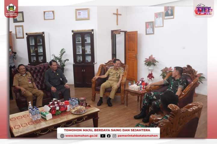 Tomohon–Walikota Tomohon Caroll Joram Azarias Senduk, S.H. bertempat di Ruang Pertemuan Walikota Tomohon menerima kunjungan dari Danrem 131 Santiago Brigjen TNI Mukhlis, S.A.P., M.M.