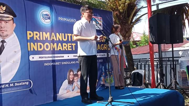 Manado– Wali Kota Manado Andrei Angouw didampingi istri Irene G. Angouw Pinontoan yang juga sebagai Ketua Tim Penggerak PKK Kota Manado menghadiri kegiatan Primanutri Pos Yandu Indomaret x Primagro di Indomaret Sindulang Mas Jalan Boulevard Dua, Kelurahan Sindulang Dua, Kecamatan Tuminting, Kota Manado.