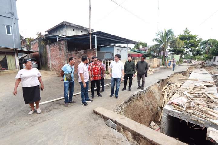 Wali Kota meninjau kondisi drainase di kompleks stadion Klabat Manado. Selesai dari sini Wali Kota, Kadis PUPR dan tim menyusuri sepanjang jalan Bethesda sambil juga melihat keadaan drainase yang baru saja diperbaiki.