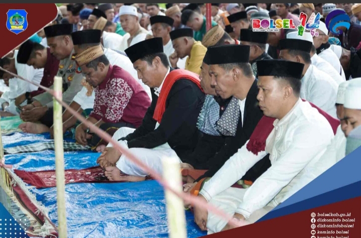 Bolsel–Bupati H. Iskandar Kamaru S.Pt bersama keluarga menunaikan Sholat Idul Adha 1443 H di Lapangan Desa Momalia, Kecamatan Posigadan.