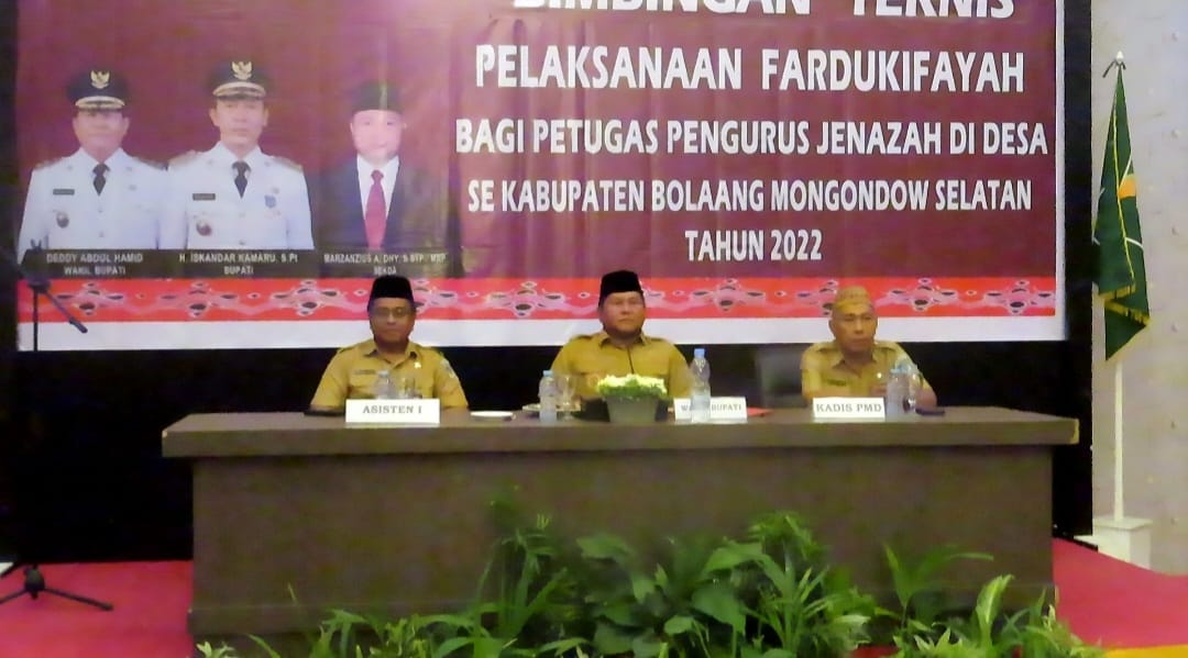 Wakil Bupati Deddy Abdul Hamid resmi menutup kegiatan Bimbingan Teknis (Bimtek) Pelaksanaan Fardukifayah bagi para Petugas Pengurus Jenazah di Desa se-Kabupaten Bolaang mongondow
